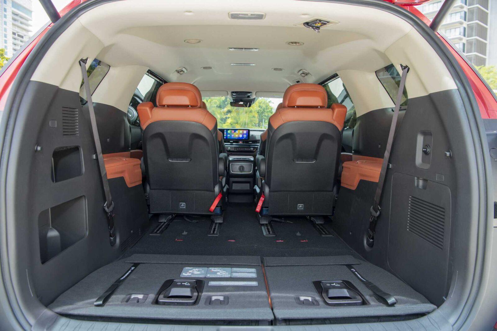 Kia New Carnival còn được đánh giá cao bởi khoang hành lý rộng rãi nhất so với nhiều mẫu xe 7 chỗ khác với thể tích lên đến 1.139 lít khi sử dụng tất cả các hàng ghế. Nhờ thiết kế thông minh của các hàng ghế, mẫu xe có thể gia tăng thể tích tối đa lên đến 4.110 lít khi gập phẳng hàng ghế 3 và tháo rời hàng ghế 2. Khách hàng có thể thoải mái di chuyển với nhiều vali cỡ lớn hoặc các bộ dụng cụ chơi golf.