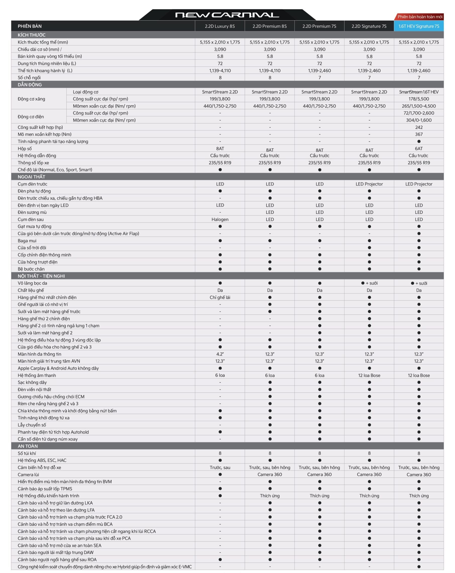 | NEW CARNIVAL 1.6T HEV SIGNATURE 7S | 1,719 tỷ |