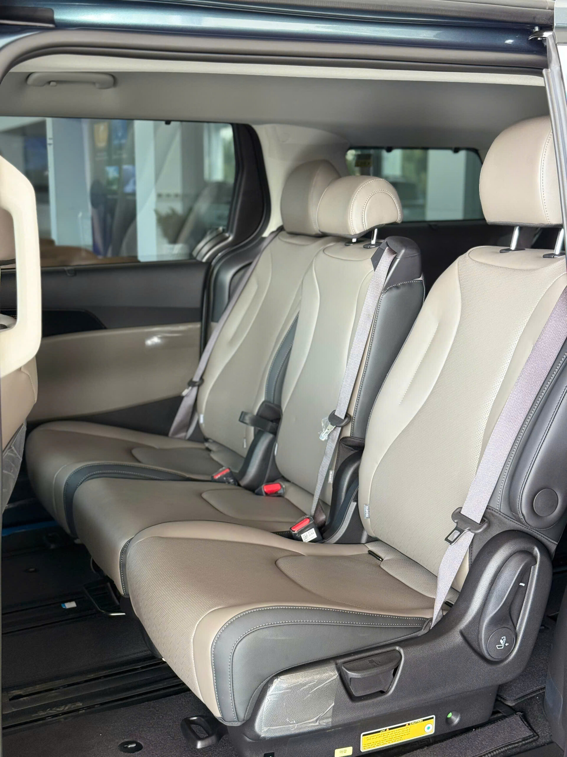 Bên cạnh đó, hàng ghế 3 trên Kia New Carnival được nhiều khách hàng đánh giá cao khi có thể điều chỉnh góc ngả lưng lên đến 120 độ hoặc gập phẳng giúp gia tăng không gian chứa đồ. Hàng ghế này có khoảng để chân rộng và khoảng sáng trần lớn, tạo không gian ngồi thông thoáng, thoải mái.