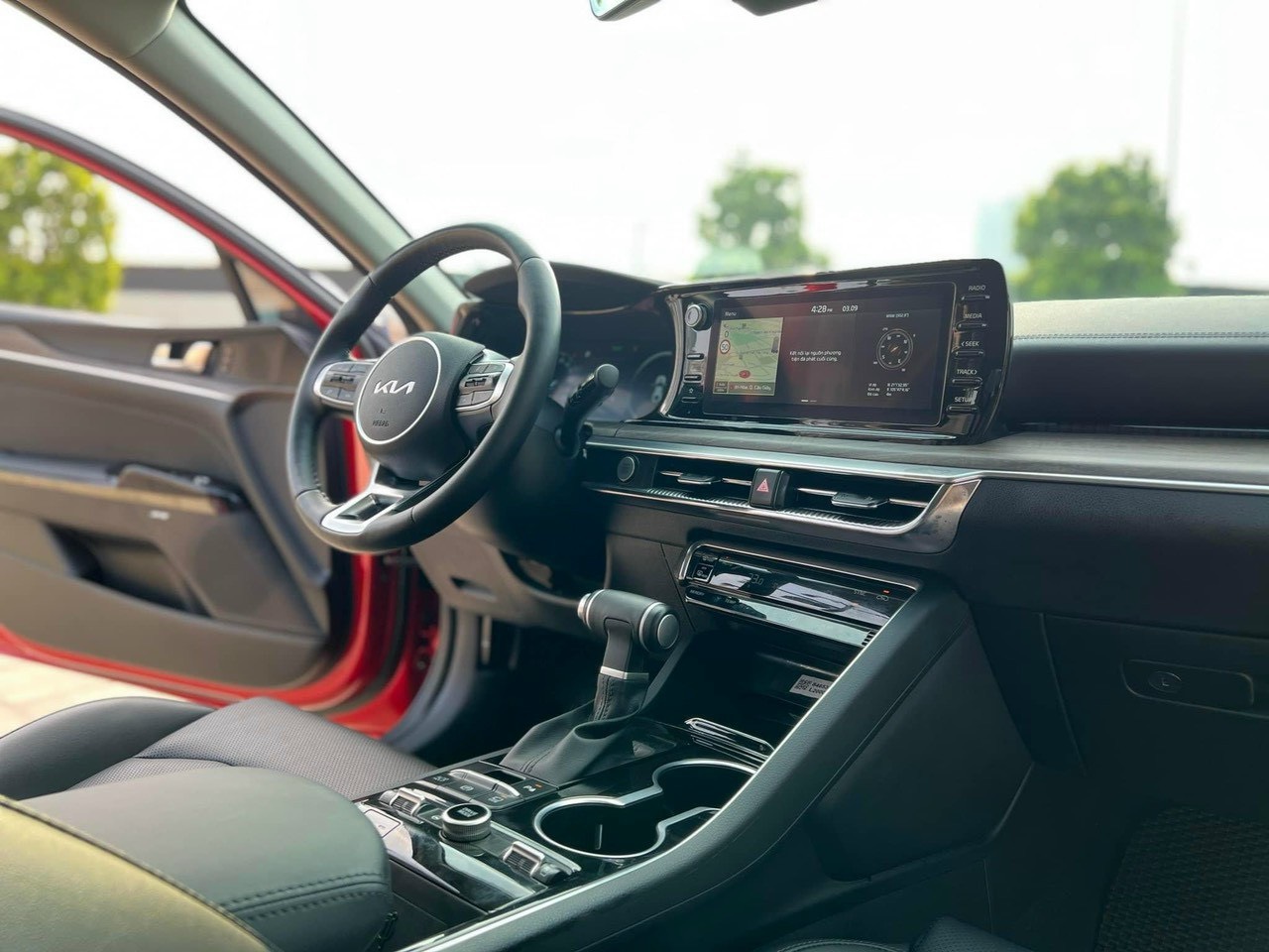 Màn hình thông tin giải trí rộng được gắn liền với cụm đồng hồ – đây là hình dạng mà bạn đã thấy trong các mẫu KIA hiện đại như KIA Sonet hay KIA Carnival được ra mắt gần đây. Kích thước màn hình 10.25 inch, tương thích Apple CarPlay và Android Auto, đi kèm với đồ họa hiện đại và nhận dạng giọng nói. Trong khi đó, màn hình cụm đồng hồ có kích thước lên đến 12.3 inch, cung cấp hệ thống định vị với dữ liệu giao thông thời gian thực.