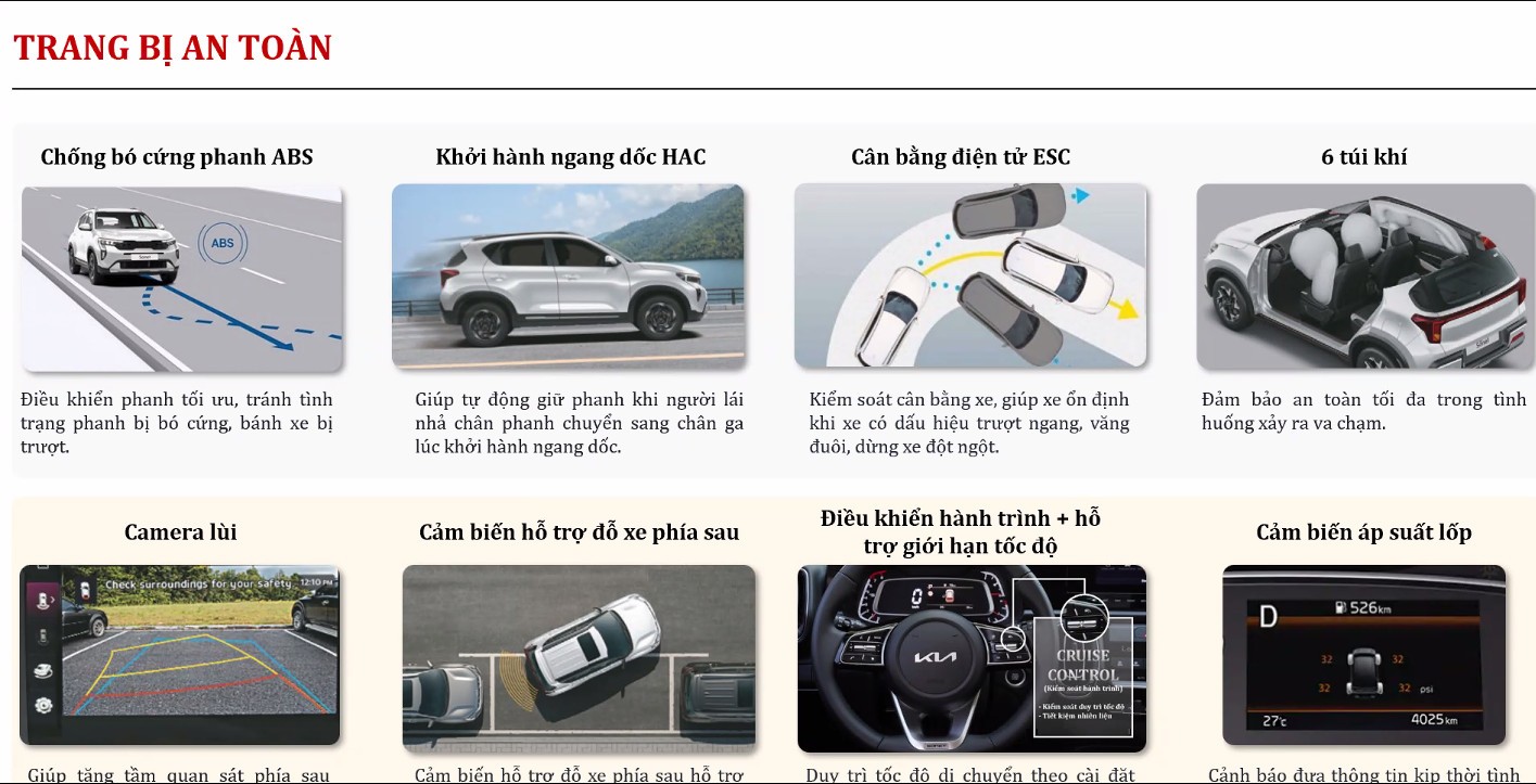 TRANG BỊ AN TOÀN TRÊN KIA NEW SONET 2024