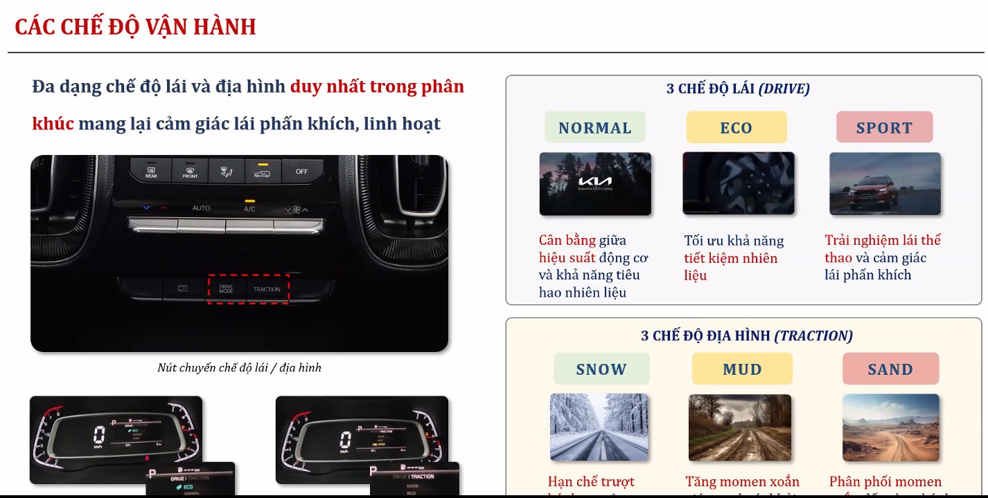 CÁC CHẾ ĐỘ VẬN HÀNH CỦA KIA NEW SONET 2024